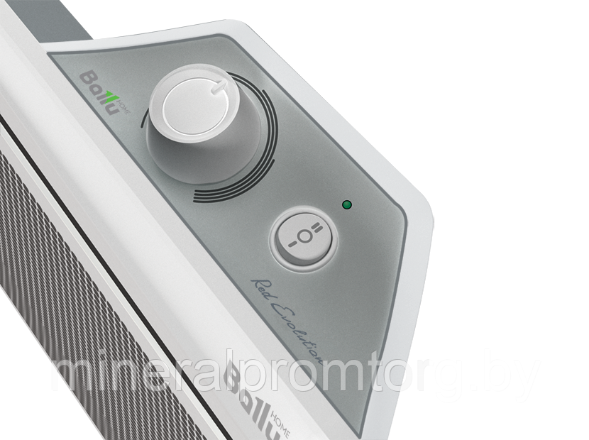 - Брызгозащитное исполнение IP 24: элементы панели управления заключены в «скафандр», что обеспечивает защиту от попадания брызг, падающих под любым углом, и дает возможность пользоваться конвектором в ванных комнатах и др. помещениях с источниками влаги.