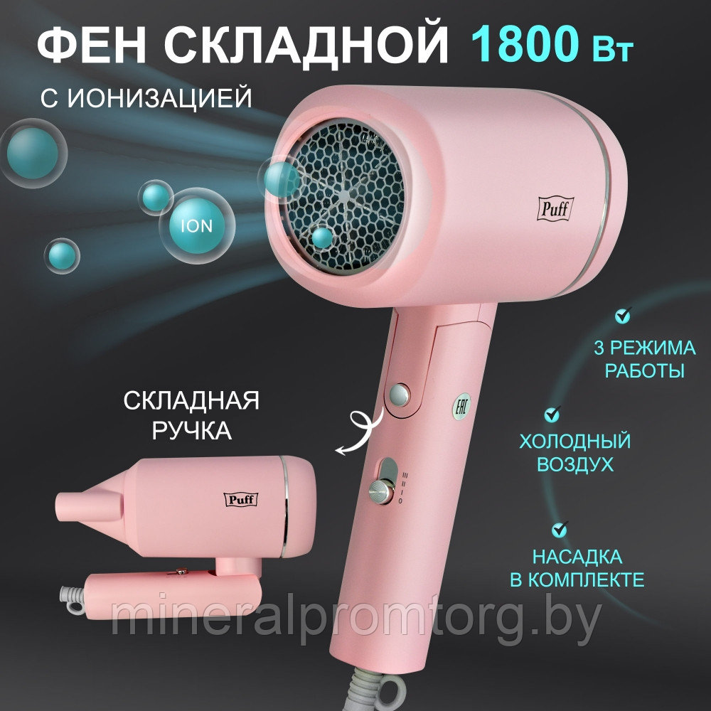 Складной фен для волос Puff-1801 Pink